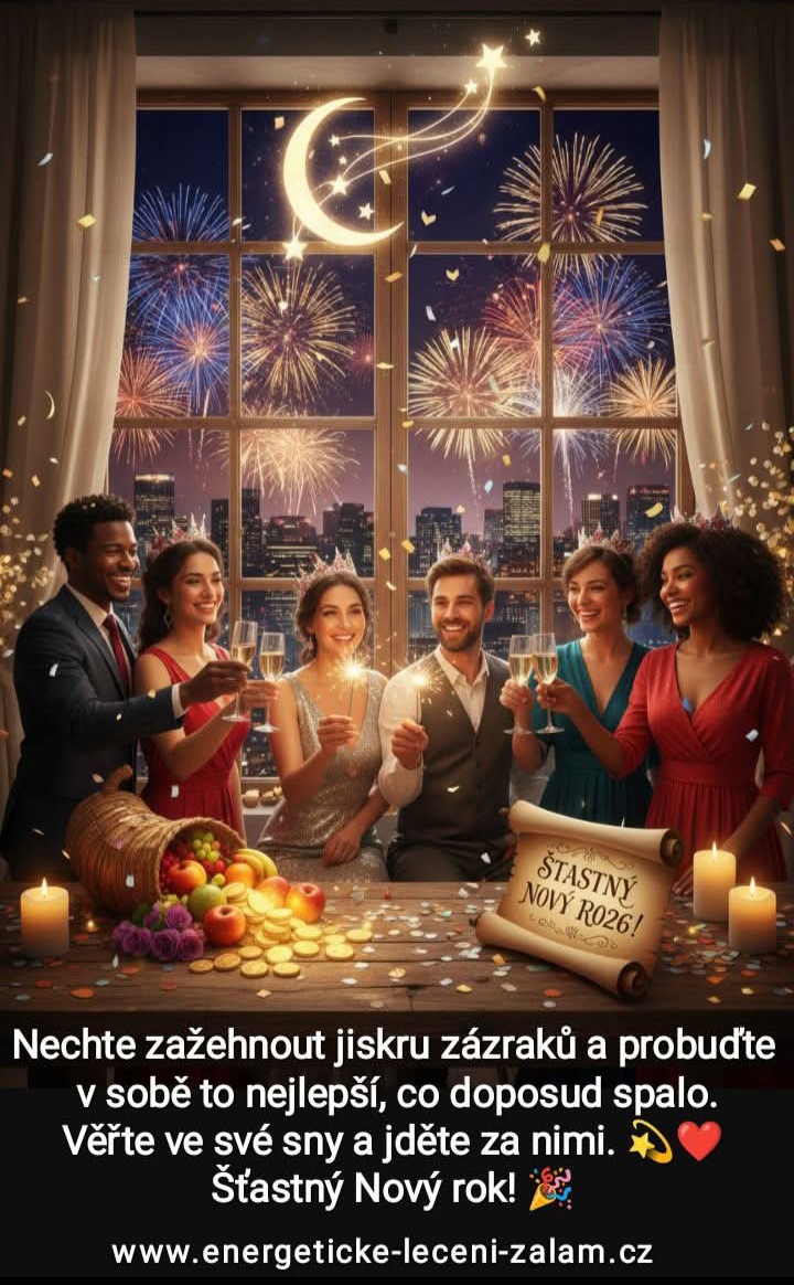 Přeji vám, aby byl plný radosti, lásky, hojnosti a splněných přání.Nechte zažehnout jiskru zázraků a probuďte v sobě to nejlepší, co doposud spalo.Věřte ve své sny a jděte za nimi. 💫❤️Šťastný Nový rok! 🎉